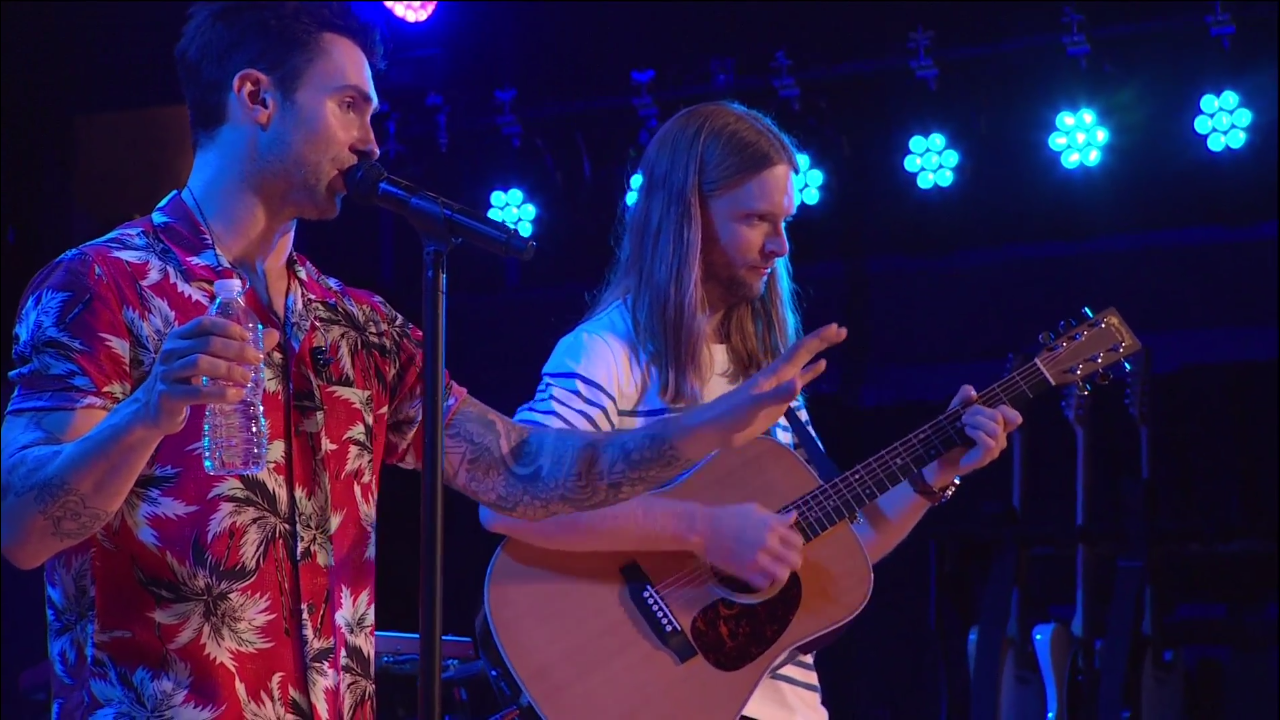 Adam Levine and the lead guitarist decided be silly on stage and started playing “Love Somebody” with the wrong guitar chords.