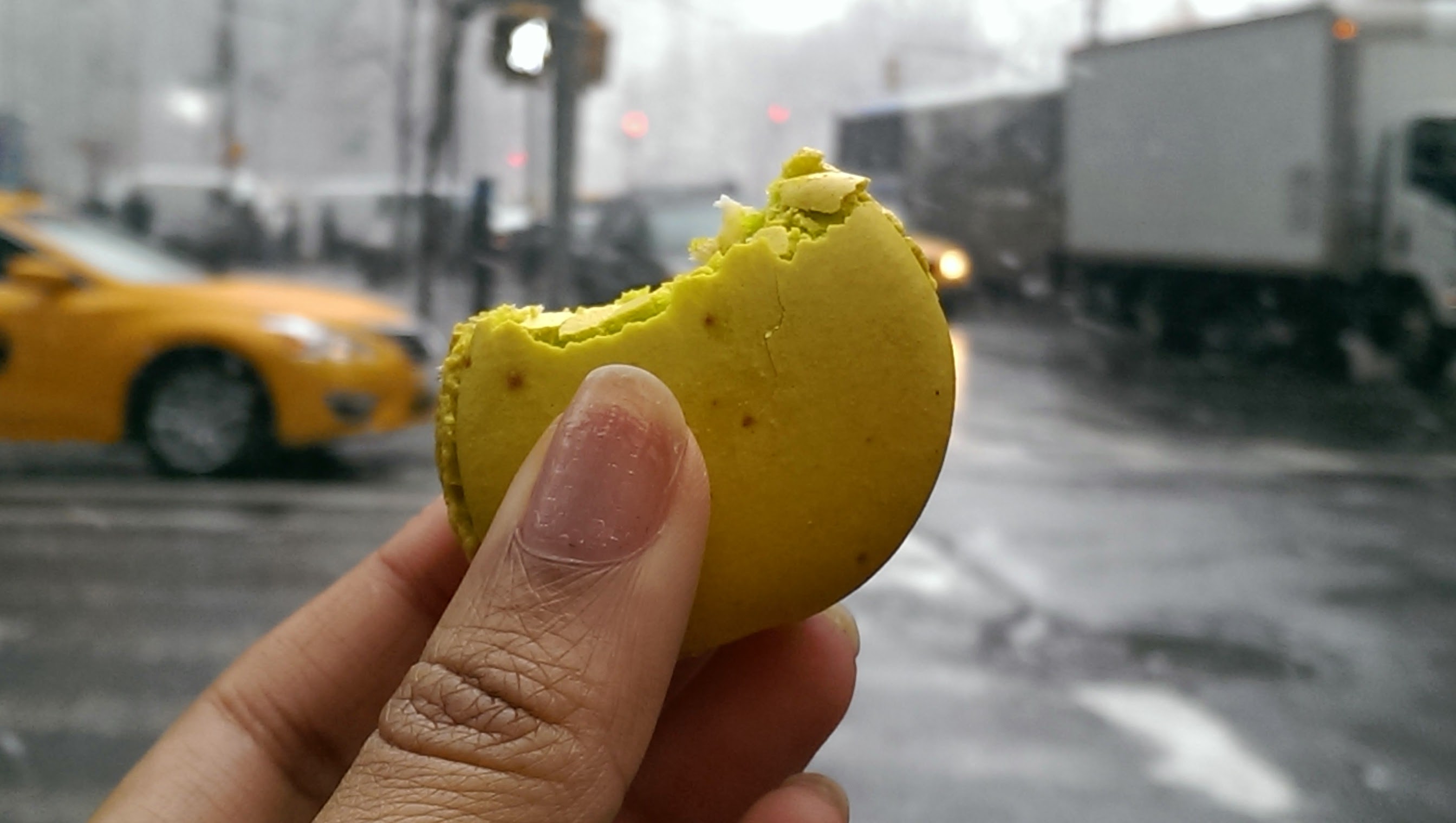 Today, March 20th is Macaron Day, sponsored by City Harvest. The French treats were given out at several NYC locations today for free, so my friends Kristell and Vickie joined me on a mini excursion to try some deliciously flavored macarons.