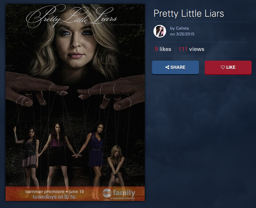 Until April 7th, fans can submit their Season 6 premiere art for a chance to be featured in Seventeen Magazine’s June/July issue. There are so many amazing PLL edits currently up on PrettyLittleCampaign.com, including Photoshopped images, sketches and even watercolor. Only one piece of fan art will win the Season 6 premiere ad spot, so here are my five favorites: