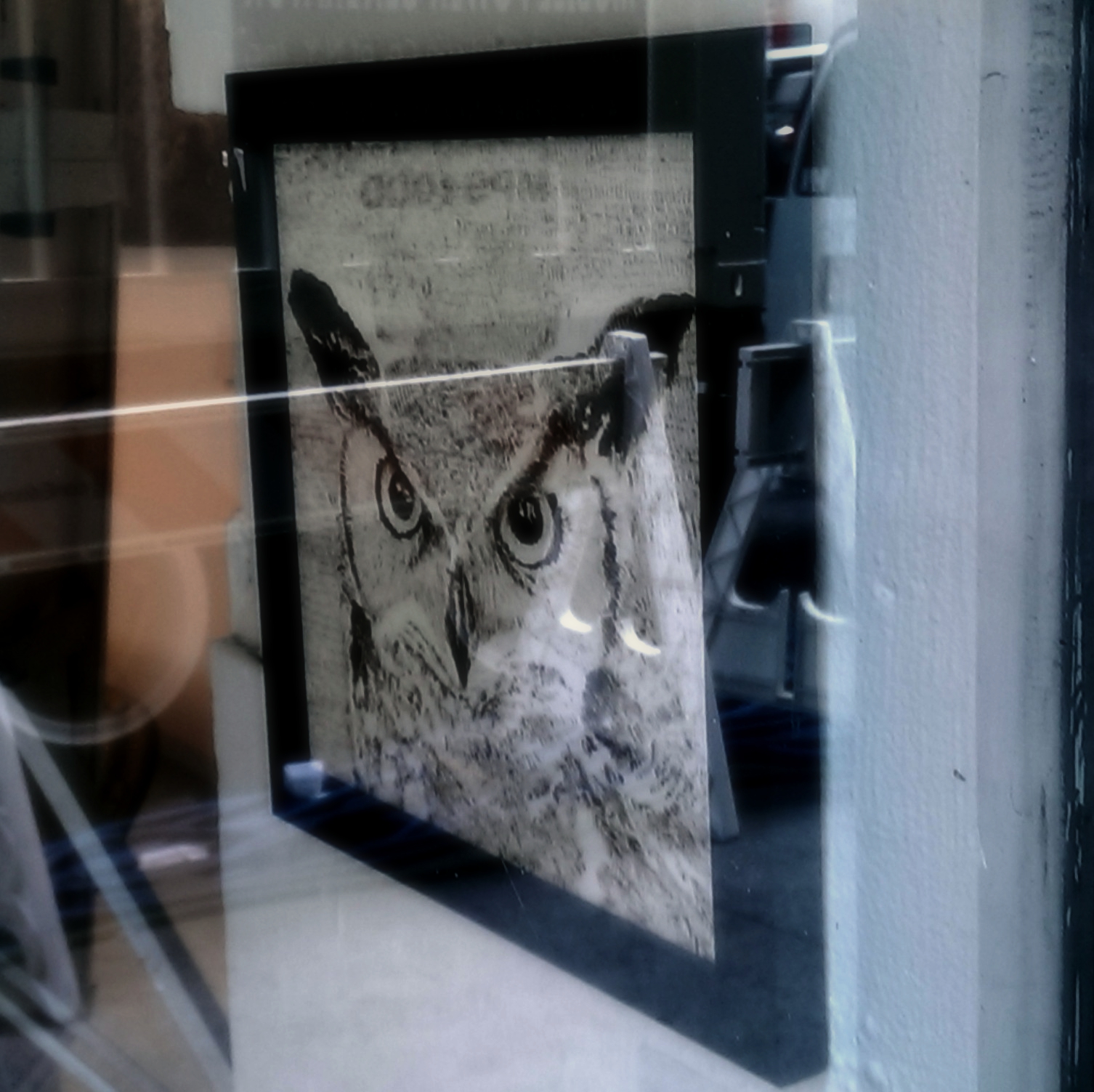 The space is only open by appointment, so I couldn’t get in. Nonetheless, I managed to snap a photo of this stern-looking owl painting by Ever Blanco Valverde through the glass.