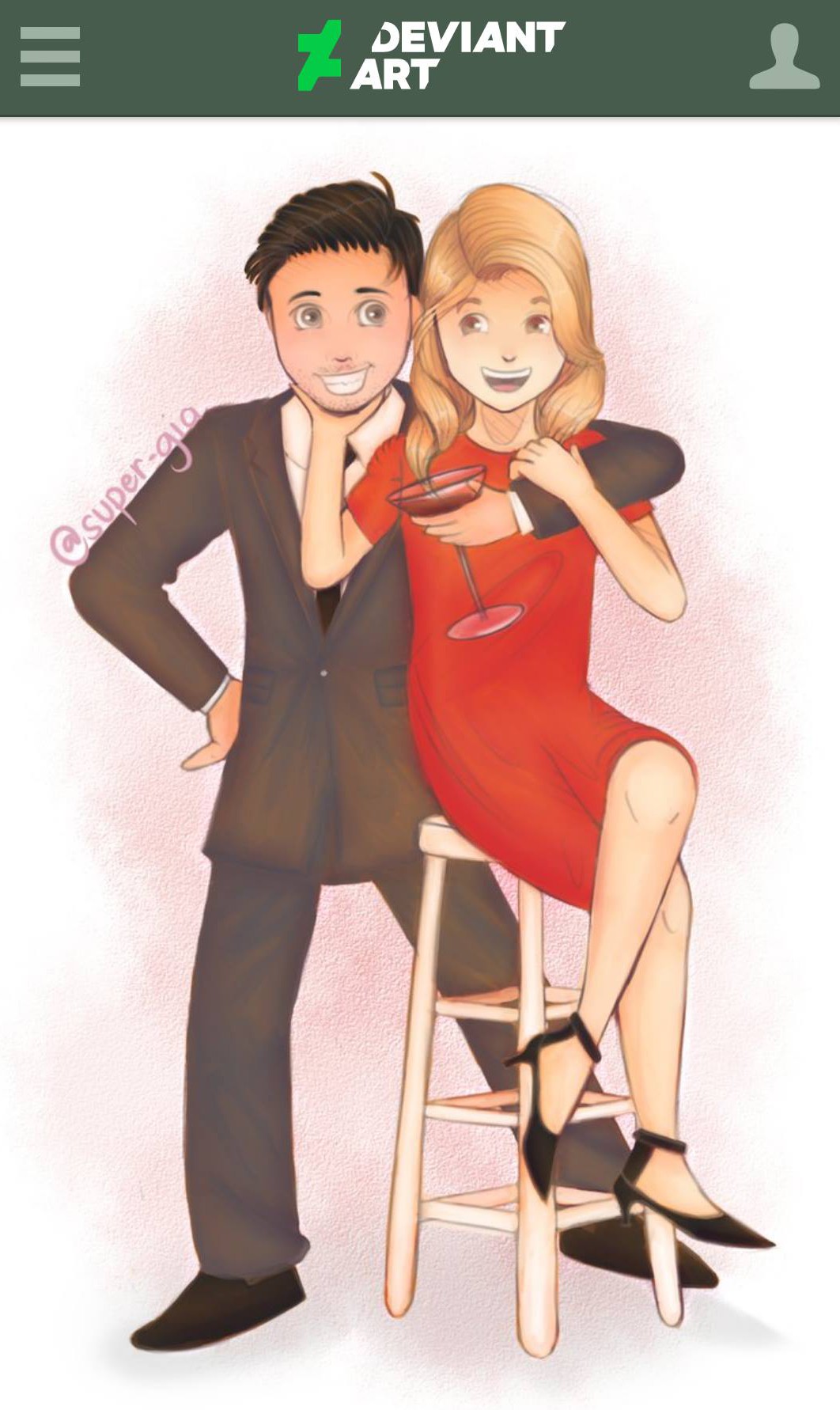 The artwork was created by Super-Gia, and it’s a cartoon/anime version of a picture from a photo shoot Grace Helbig and Chester See did together. Chester’s cartoon looks so much like him! Grace sort of looks like a housewife that loves to drink wine, but I don’t hate it!