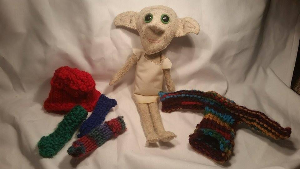 I’m Melissa, the founder of Simply Melissy, and I’ve been making dolls for years now. I love to make sure that all the little details that book (and movie!) lovers want to see are there. If you peek under Madeline’s dress, you’ll see the stitches from where her appendix was removed. Dobby isn’t just a doll—he comes with a whole set of clothes, from a Weasley Sweater, a hat knit by Hermione, and socks purchased the correct way—without matches!