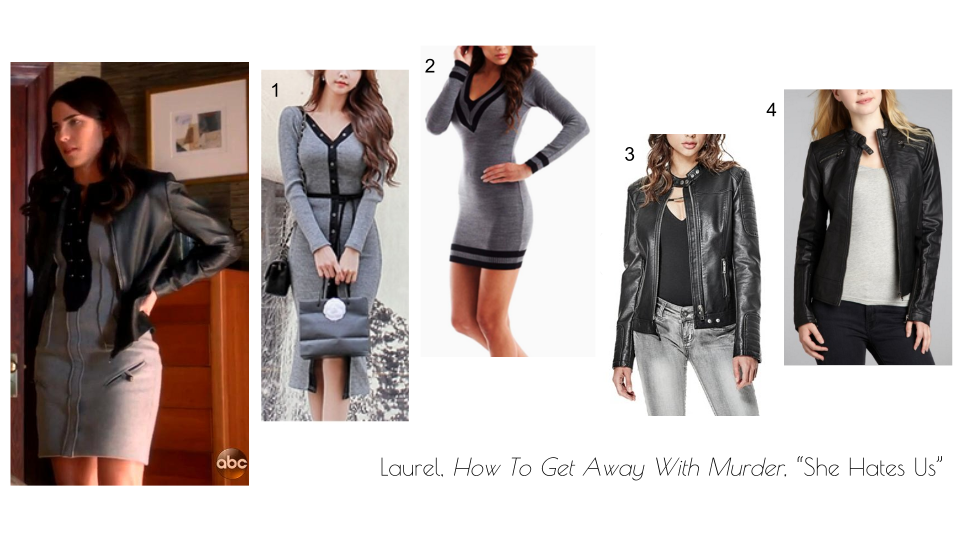 On last week’s episode of How To Get Away With Murder titled “She Hates Us,” Laurel Castillo (Karla Souza) mixed business casual with biker chic in a gray sweater dress and black leather jacket.