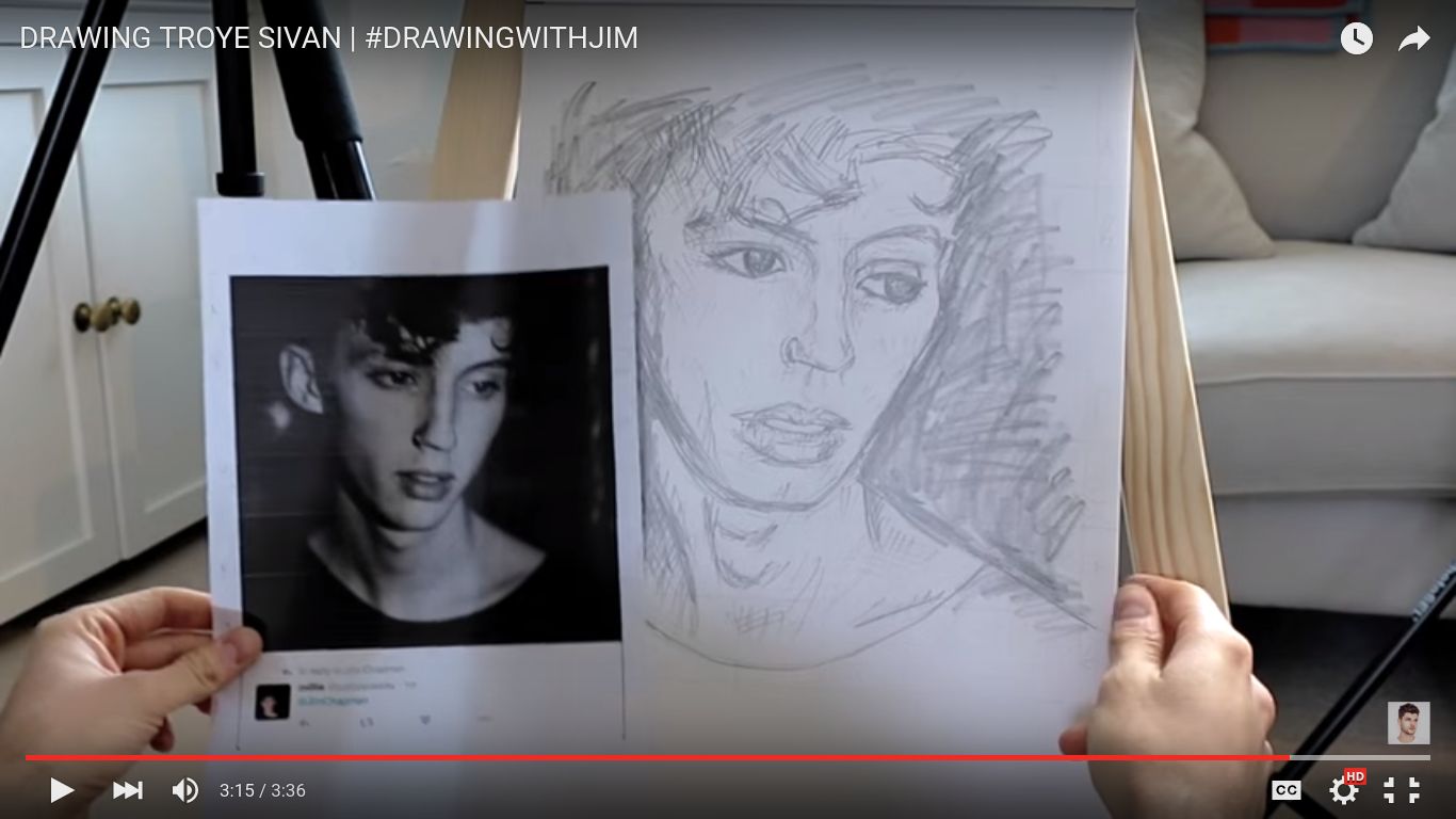 Sometimes I forget that YouTuber Jim Chapman used to draw, so when I saw this video he posted earlier in the week of himself drawing fellow YouTuber Troye Sivan, I was super hyped!