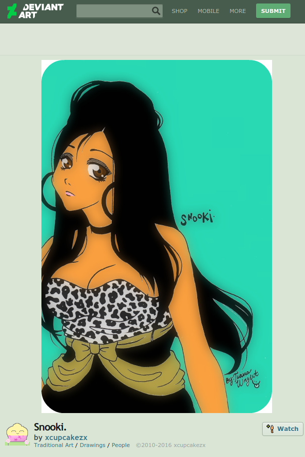 In honor of this disaster, enjoy this piece of anime-inspired fan art I found of Snooki on Deviant Art by Tiana (xcupcakezx).