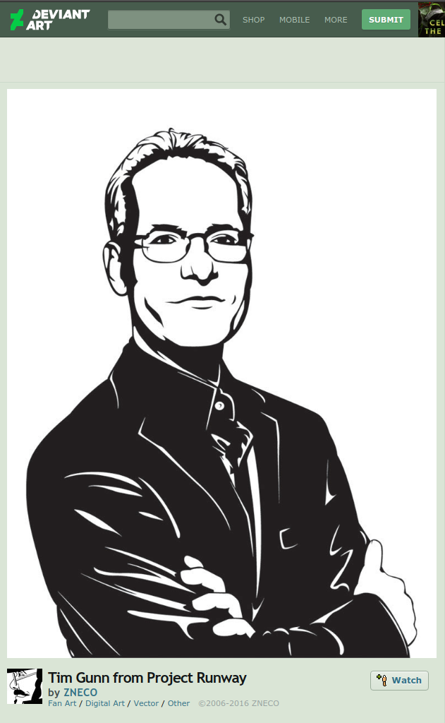 I decided to feature Tim Gunn for this week’s Fan Art Fridays at the height of NYFW to applaud his stance on the issue. I’m glad he took the time to write this. Tim Gunn looks deep in thought in this vector by ZNECO on Deviant Art.