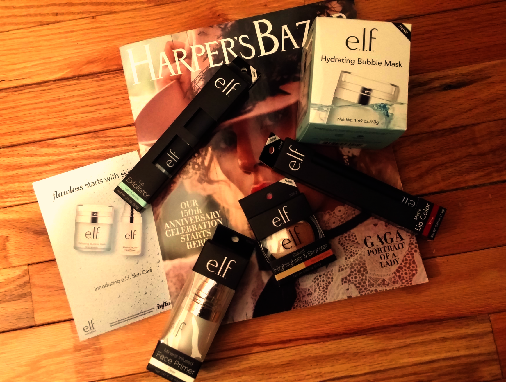 A few weeks ago I got an e.l.f. VoxBox in the mail, and I just got around to playing with the products inside. I was sent 6 products: a Hydrating Bubble Mask, Lip Exfoliator, Mineral Infused Face Primer, Baked Highlighter and Bronzer in the shade Bronze Glow, and Matte Lip Color in the shade Wine.