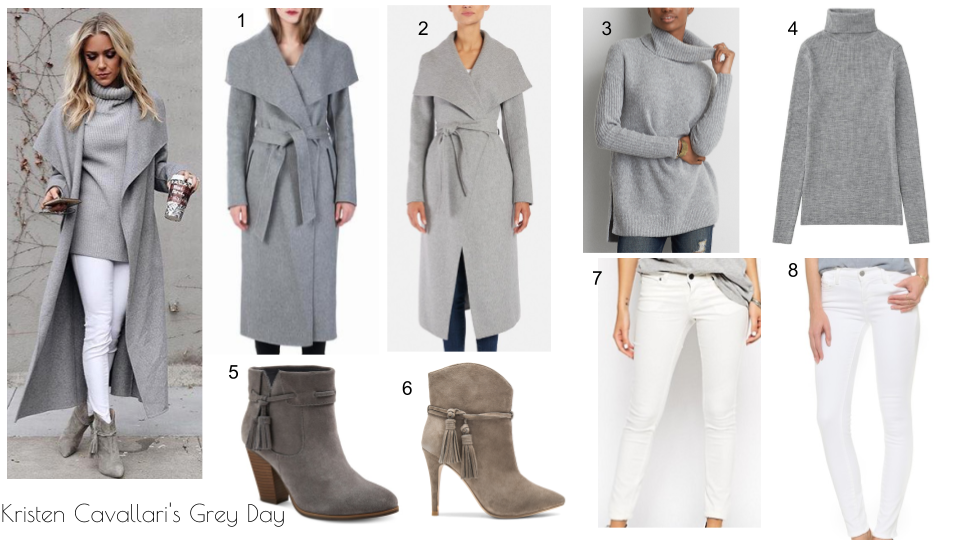 Kristen Cavallari was a vision dressed head to toe in grey with splash of white on one of the last days of 2016.