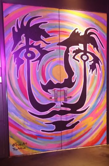 Called “Dali Swirl,” the mural is painted on the doors of The Bar Downstairs at Andaz 5th Avenue. In it, Salvador Dali’s face, signature mustache included, is painted against a backdrop of rainbow of swirls.