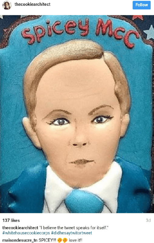 Might I say that Sean Spicer/Melissa McCarthy’s eyebrows and eyelashes look phenomenal on this cookie. I wonder if these cookies are being sold. Even if they were I wouldn’t want to eat it.