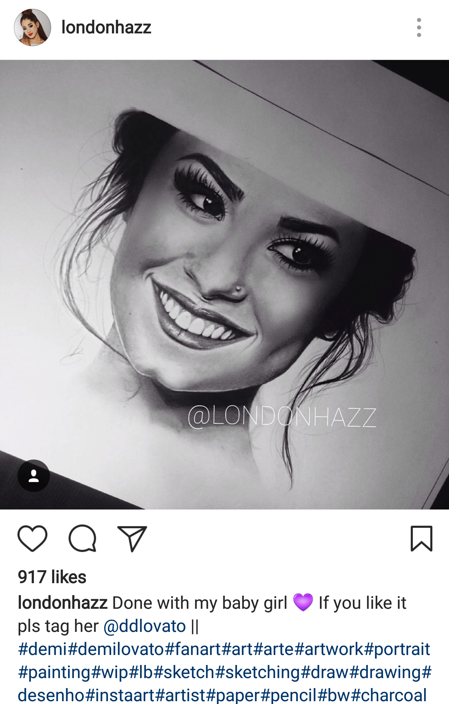 To celebrate this amazing song, here’s some fan art of Demi by @londonhazz on Instagram. Look. At. Those. Lashes!