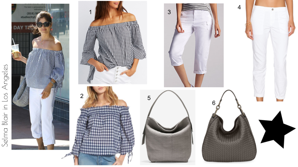 Actress Selma Blair was spotted in Los Angeles this week sporting a classy off-the-shoulder gingham top, reminding us all that it’s time to hit the parks for summer picnic season.