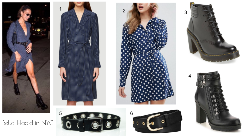 She rocked an edgy ensemble on Monday with a blue polka dot shirt dress, chunky combat boots and a rivet belt.