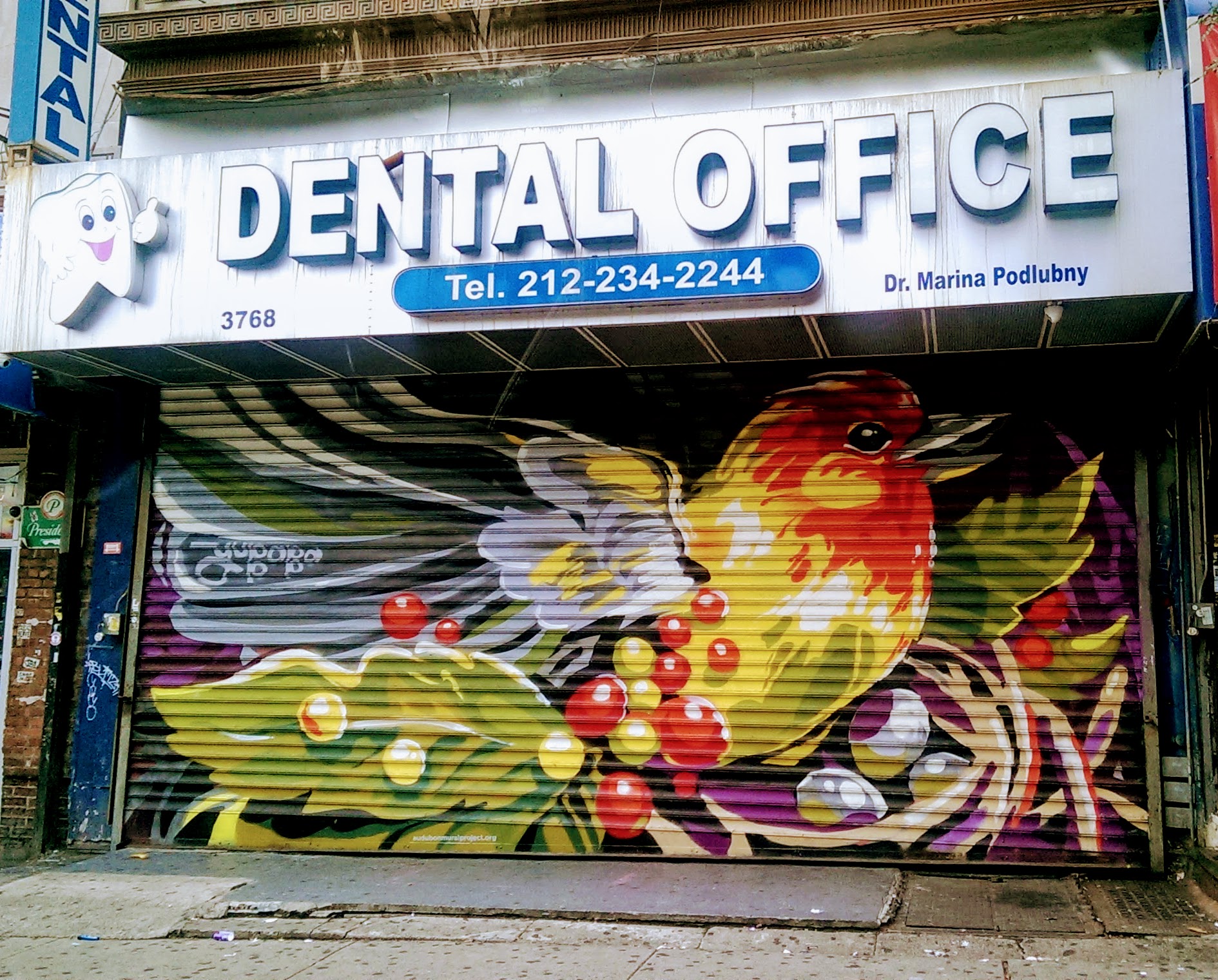 Over the weekend I came across this beautiful mural in Washington Heights on the iron gate of Marina Dental Center.