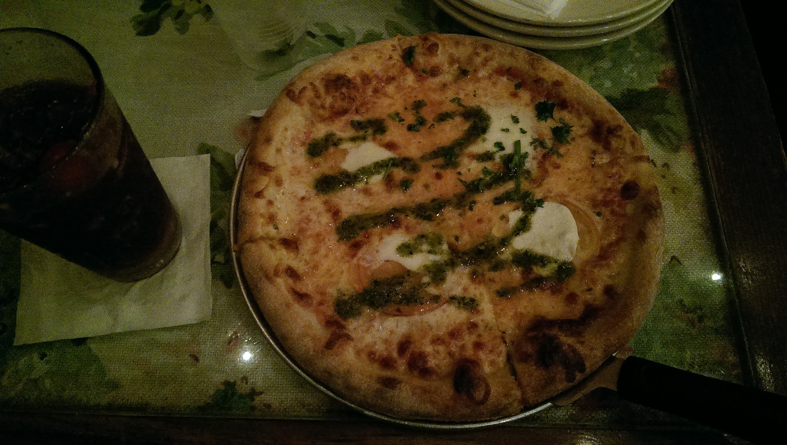 Views.Niketa at La Coca FallsYokahu TowerThis is what Dana wears to hike through the forest.It took a lot of work to get all the way down into La Mina Falls.Found this little guy at a gift shop in El Yunque Forest. Name: Juan Ponce (nickname Mini Ponce), Northern MockingbirdSangria from Pirilo Pizza RusticaPirilo’s Margherita Pizza.