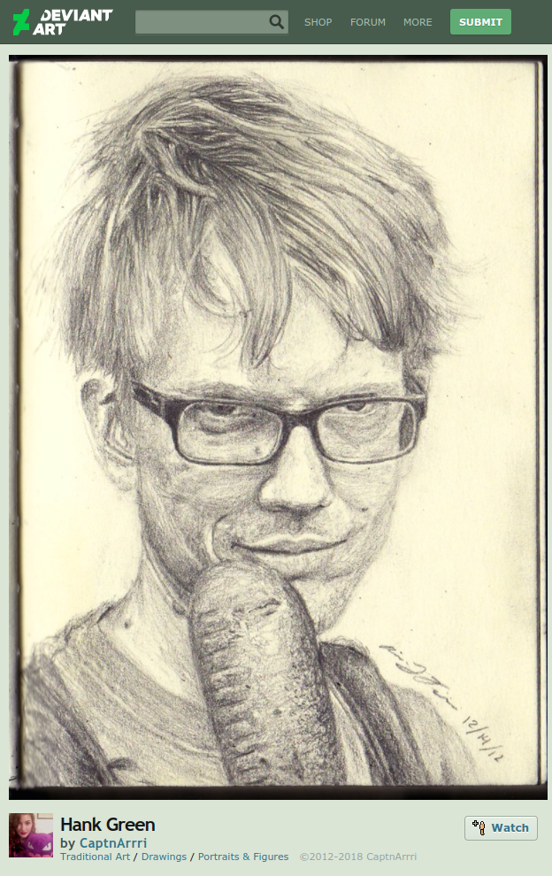 In honor of this awesome literary news, I’ve decided to feature this pencil sketch of Hank Green by Ariana Filippini (CaptnArrri) on Deviant Art. The hair is so spot on. His facial expression is also quite accurate.