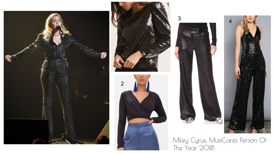I love how polished and put together Miley looks in this outfit. The plain black color against the sparkles make for a freaking fabulous look without appearing too overdone. I’m a huge fan of fun outfits like this one.