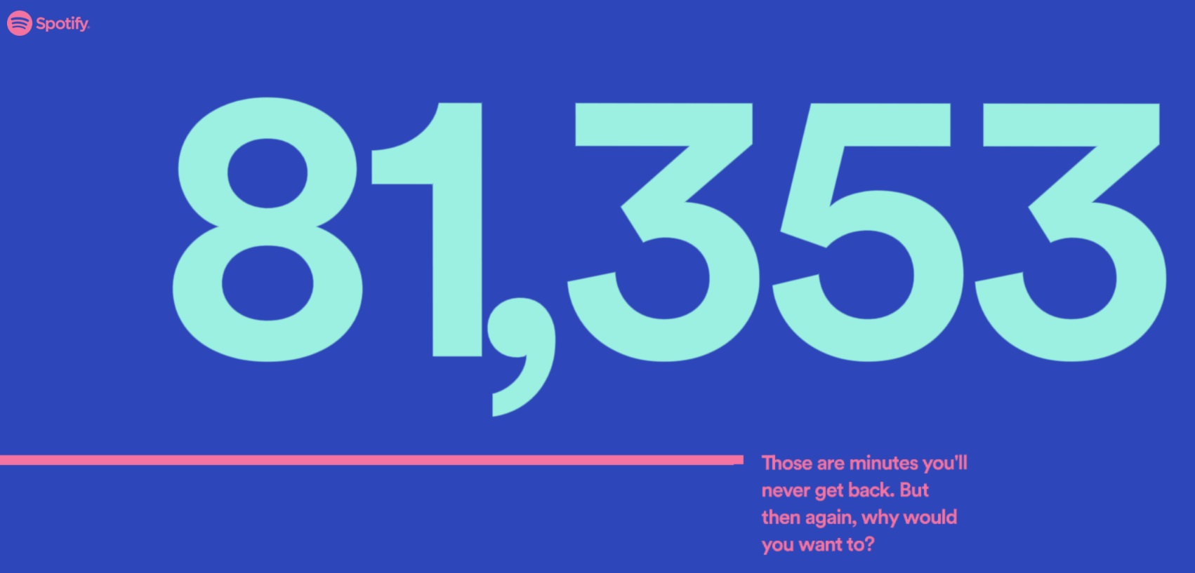 I don’t remember the total amount of minutes I listened last year, but back in 2014 it was almost 38% of this. I have for sure been spending more time on Spotify after graduating college.