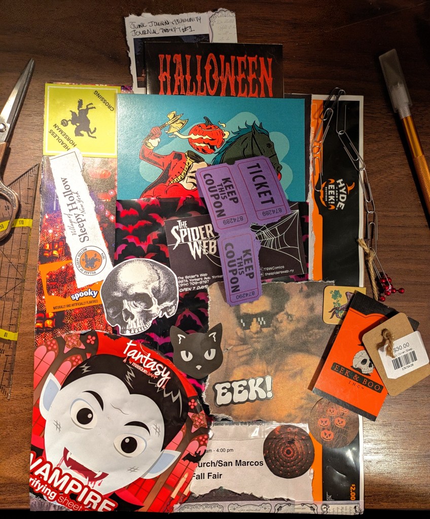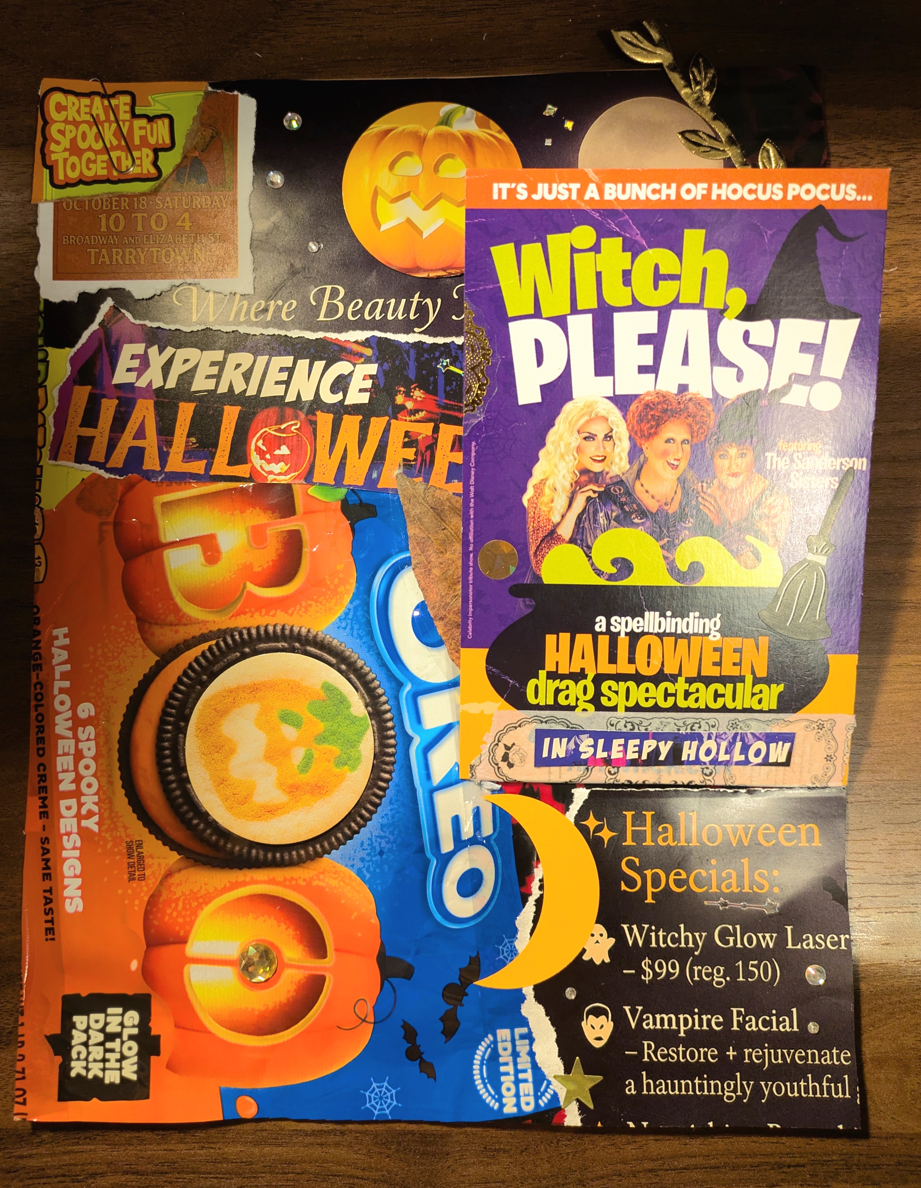 The junk for the Halloween spread was collected around Sleepy Hollow at coffee shops, train stations, and via marketing mail.