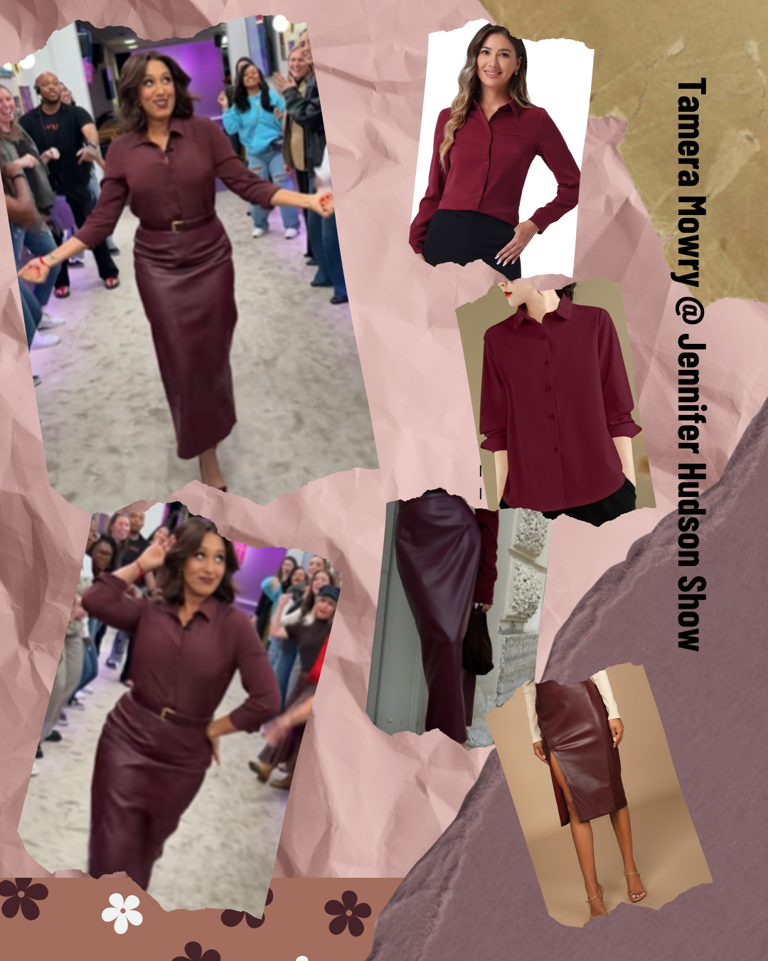As Christmas photo season rolls around, I’m sure we’re all looking for some picture perfect outfit inspo. Tamera Mowry’s maroon ensemble on the Jennifer Hudson show recently is giving holiday red wine vibes, so here are some pieces similar to her look!